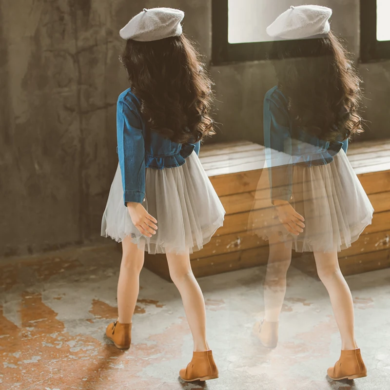Girls Dress Fashion Casual Denim Top Puff Bottom Vintage Design